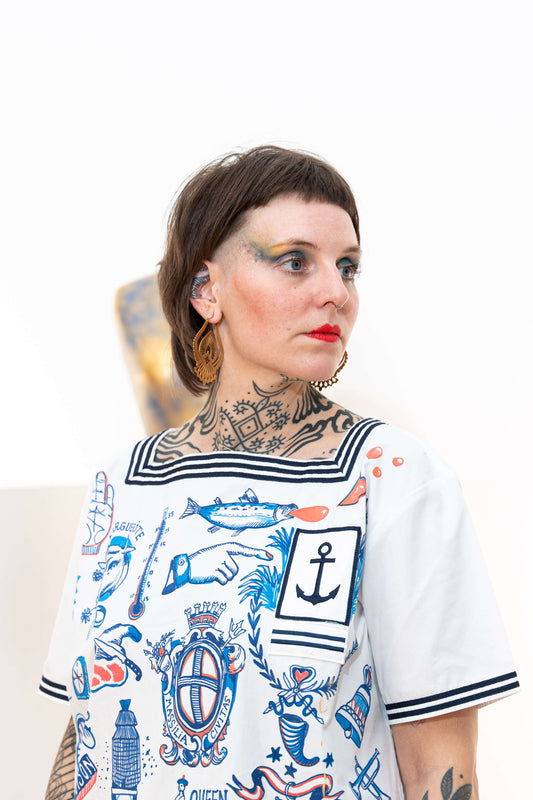 “Mauvaise graine”, the new Vector exhibition, revolves around a large fresco by visual artist Manon Bara and hand-tattooed clothing./////
